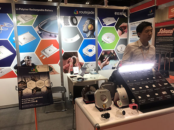 신용카드보다 얇은 배터리로 소형 전구 48시간 가동…'신기하네' 5일 서울 삼성동 코엑스에서 개막한 에너지플러스에서 국내 중소기업인 '루트제이드'는 웨어러블디바이스 등에 탑재할 수 있는 초소형 배터리를 선보여 관람객들의 주목을 받았다